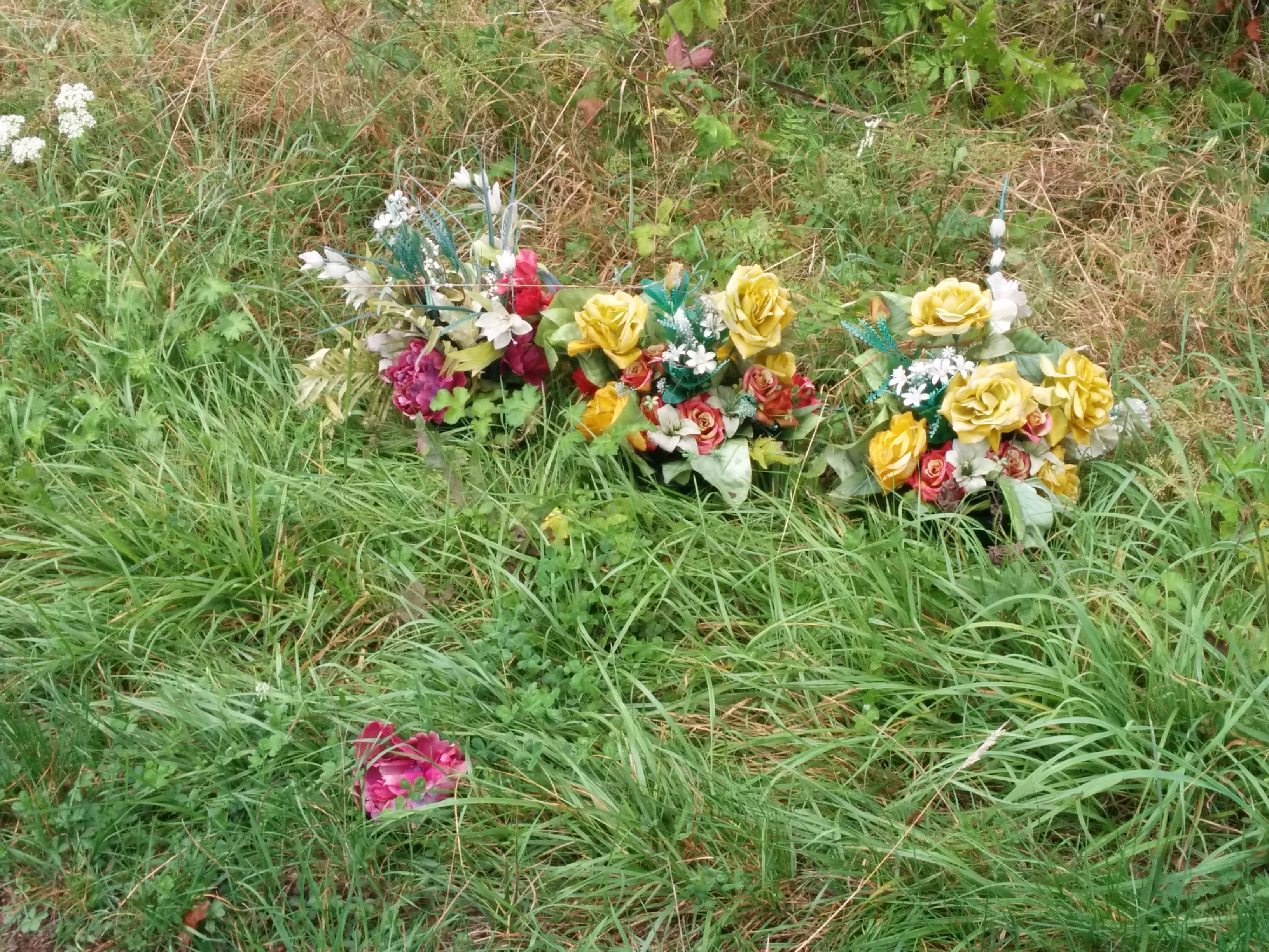 Today’s pic: another roadside find.. buckets of plastic flowers (they were originally lying flat, but I propped them up for the photo. My token effort at flower arranging.)