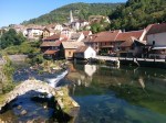 Pics: scenic village on the river Loue; and the source of the Loue.