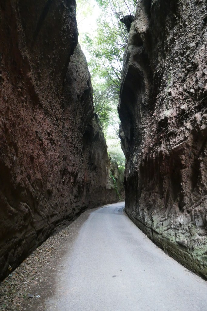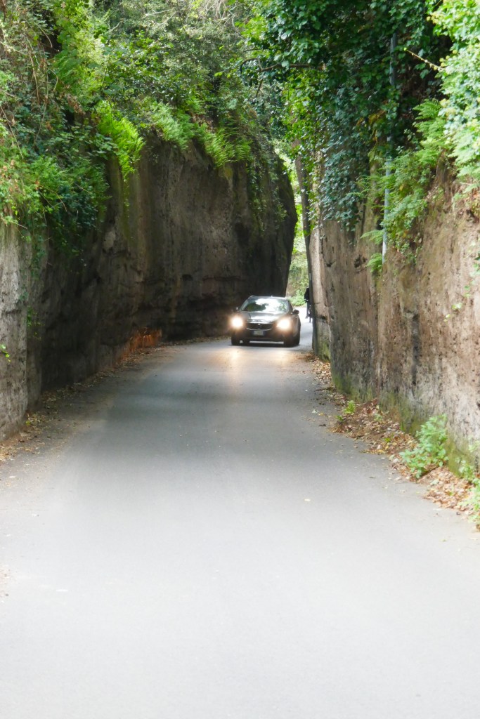 The first part of the day was pleasant, re-tracing my path through the medieval district and following the route that passed quite literally under the papal palace. Then there was a inetesting section of road carved into the rock. There are claims that the road was carved out by the Romans, but many of the scars in the rock look suspiciously machine made to my eyes.