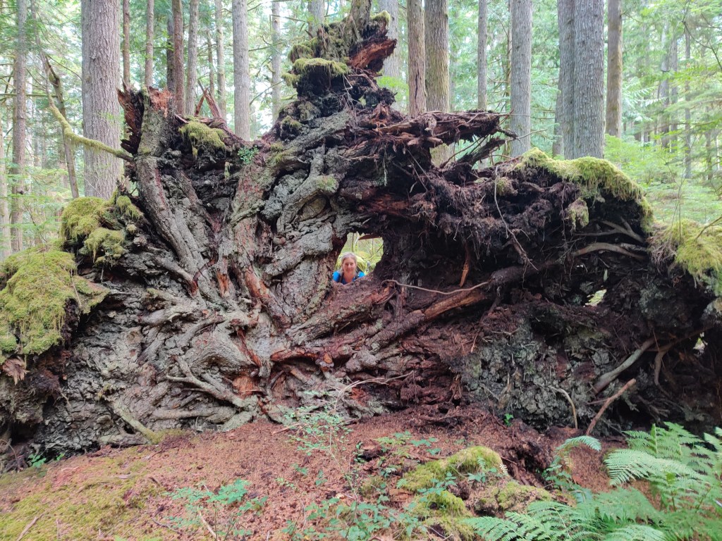 After the steep downhill from the bluff, the trail was quite pleasant for long stretches: mossy glades, soft underfoot, and lots of shade – which was appreciated on another hot day. We have decided to turn the first three day stint into four days, so we stopped for the day early in a nice shady campsite at Plummer Creek, with the nearby creek big enough to strip off and sluice off the sweat and grime. Yay! There was lots of level, soft tent pitches, but due to the forest, our view of the night sky from our fly-less tent was almost totally obscured.