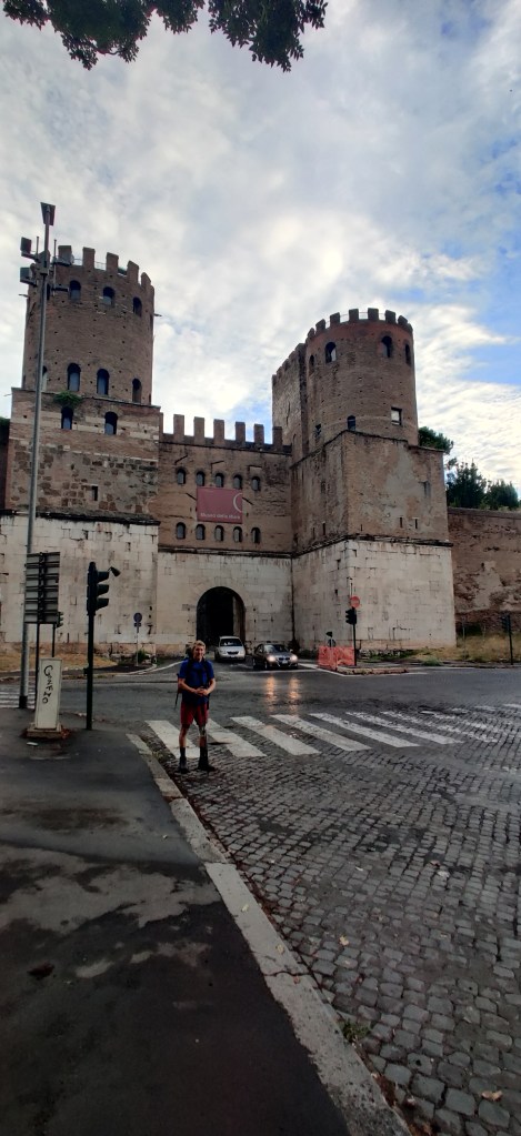 The end of today’s section is the town of Castel Gandolfo, the castle being a summer retreat for various Popes through the ages, and home to the Vatican observatory. Guess they need to keep an eye on the folks up in heaven. The town is perched on the rim of an ancient Crater lake, meaning the last five km were a slog up hill to said rim. Tough way to finish day 1!