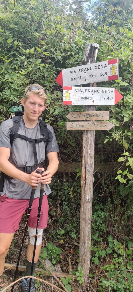 We’ve met some interesting and friendly folk in the two days so far. A woman walking on the path yesterday stopped us to ask about the VF. Turns out she’s a doctor, and she and her husband run a B&B in Puglia, near Lecce. She wants to get listed on the VF app, but for now we have her contact info and she wants us to stay when we make it that far. It’s not until day 34 or so! Today a car came to a panic stop in a cloud of dust as the young couple just wanted to say ‘hi’ and wish us a buon Camino! And lastly, the helpful gent in Velletri who confidently told us the VF was up that street. Thank goodness for Google maps with the trail pre-loaded, otherwise we may still be walking.