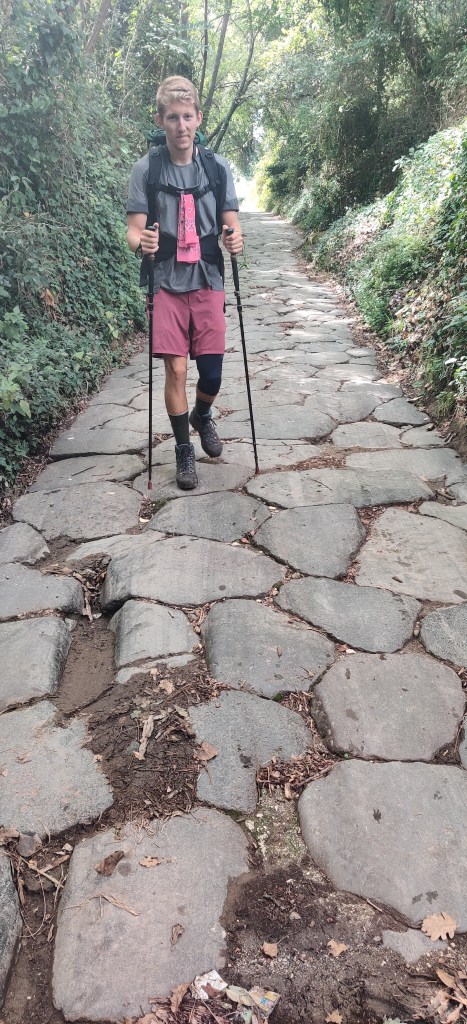 The morning session was a delightful mix of narrow lanes (barely wide enough for a Fist Panda!), traditional pathways between villages, and sections of Roman road. The VF signage has become almost non-existent, so we are heavily reliant on the app and the version of the path I loaded into Google maps. Unfortunately they don’t always align, and other times it’s difficult to decifer which piece of road or pathway we should be following. We got geographically embarrassed a couple of times which added to the daily kms a bit.