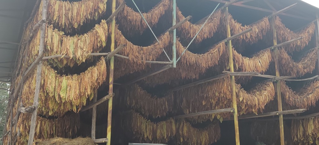 The weather was not conducive to photos today, but it was mostly ideal for a hard day on the VF. The relentless ascents and descents were modestly less exhausting as the sun remained mostly hidden – although the humidity wasn’t hiding. The path climbs up and over a number of ridges, and rather than the gentle gradient of a normal road, the inclined were vaguely similar to the Langford’s driveway (I realize this comparison will be lost on anyone who hasn’t experienced their driveway!) The agriculture has changed to tobacco farming, and there was lots of harvesting in progress (although I conclude from observation that perhaps tobacco harvesting is always in progress.