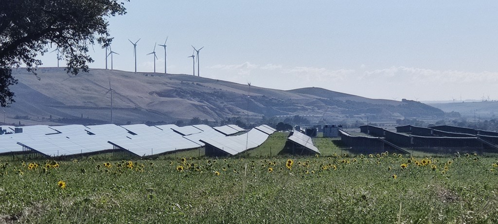 Yet another day with a steep downhill start to ensure Sam’s knee never had a chance to warm up. We have moved out of the hills and into a landscape of big farming. We saw more abandoned and crumbling farm houses than we saw being lived in. One farm has partially given itself over to farming the sun, but it has surprised us that there are not more solar panels in use. It is southern Italy after all.