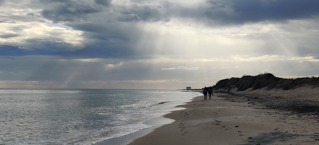 Susan took the mochilla express, while Sam and I took the official alternate route. While the normal route is 30km, we were promised 20km. Unfortunately, not only was this a short measure, but the suggested path was not actually a path at first, but a walk along the beach. Having had a modest previous experience with beach hiking, of we’d known in advance we would have likely opted for the extra kms rather than the extra effort. However, not all was lost, as we happened upon a beach bar which eventually served us a coffee. There were no cafes on the route through the olive groves!