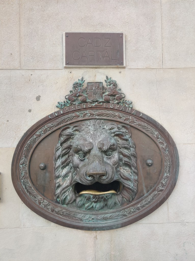 Above are scenes from our rest day in Cadiz. I’m testing the ‘gallery’ feature, but on my draft view, all these photos look truncated. I may need to revert to the one at a time upload procedure. We were a week too early for the sailing, but the city was plenty lively with the ‘South’ festival in progress (the skulls are part of the festival). The lion is the mail slot on the post office, and the street scene is taken from our room – on the much quieter Sunday evening.
