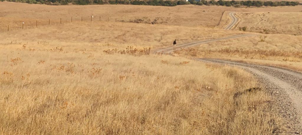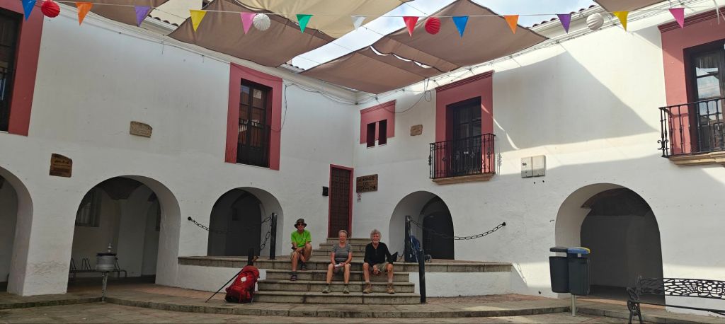 The walk was over a hill and vaguely following the Roman via. Definitely cattle country (see pic above) although no cattle were observed. Which is odd given Casar de Caceres is known for its ‘torta de queso’ and has a cheese museum. One wonders whether the exhibits are blue and fuzzy! The famed cheese is quite a large lump of cheese, and by all accounts very pungent. Doing a camino with ‘cheese belly’ did not appeal.