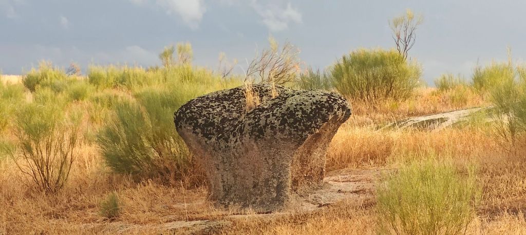 The morning was great walking, working our way up the hill following the path of the Roman road, and at times walking in what is left of it. There were a number of milaria, but for some reason they have been relocated from their original positions. There were many weird and wonderful naturally eroded rock outcrops as well – see photo above.