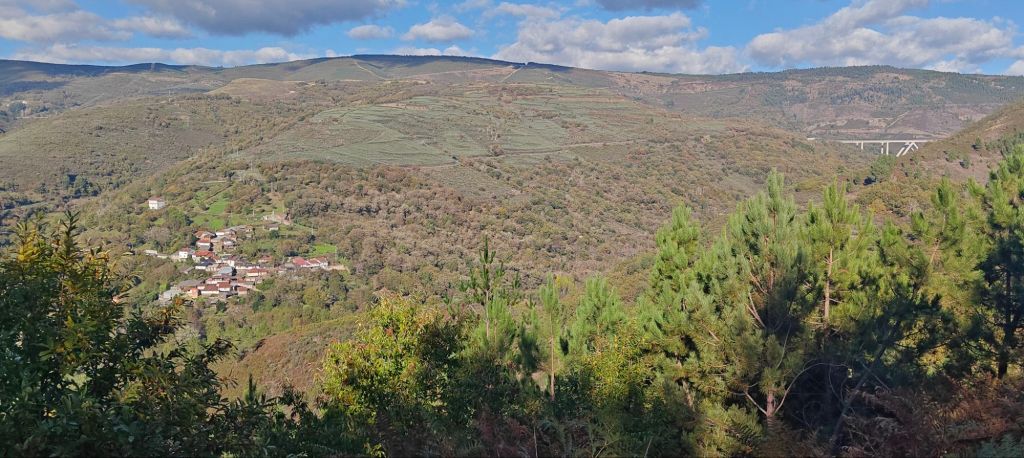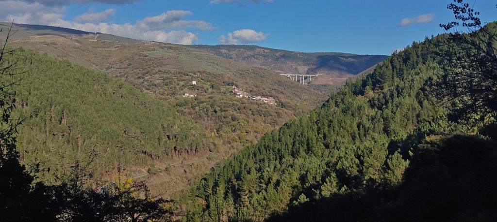 The train was late arriving in A Gudiña, but by 1100 I was stomping my way along the Camino. It was cool with low cloud – almost low enough to be mist – but by 12 noon it had burned off and I got to see the scenery. Other peregrinos, who would have been evicted from the albergue at 0800, would have had a misty four hours walking before they saw any scenery!