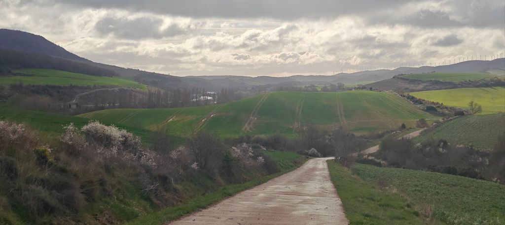 Tonight I’m in the town of Sanguesa, but as the albergue is closed, I’m staying in a cheapo hotel on the fringes. The hotel is cheapo in amenities, not necessarily on price. Last night’s albergue fellow residents had between them stayed at the only two alternatives. This hotel won the popular vote. The room is adequate, but so far the hot water is not, which will require a trip to reception with my Berlitz phrasebook (a publication which I suspect no longer exists!) I arrived just in time to partake of the menu del dia, and as I finished eating around 4p, I won’t need (or require) any more food for the day. Just as well as it’s 750m down a hill into the centre of town, and my legs are now resting! Apparently the breakfast is fantastic, so I’ll dream in hope. Today there was nothing in terms of refreshment stops because there was nothing in the way of towns or villages. Two coffees and a Napolitana sustained me for 28km, which is possibly less calories than the 1850 my app claims I burned today. Not that I’m convinced the apps are accurate. A full breakfast report will be in tomorrow’s post!