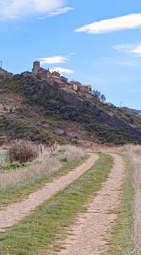 It could have been a really pleasant day’s walk, crossing broad tracts of farmland on the edges of the river valley. However, the relentless wind was energy sapping, although judging by the clouds building up on the French side of the mountains, Spain was the place to be! That assumption may change if AccuWeather is correct. Tomorrow I head to Jaca, which guards the entrance to Somport pass, and the forecast is for 1- 3 cm snow, changing to rain in the afternoon. Character building!