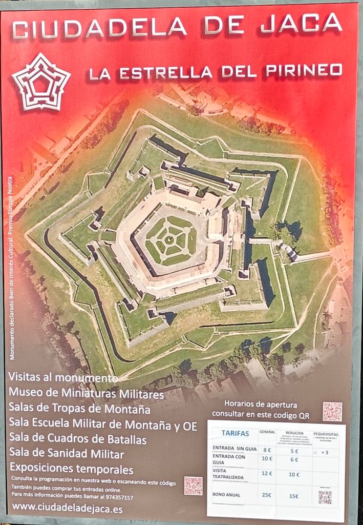 There are a few other pilgrims: one Spanish man stopped to ask where I’d come from, and he was happy that I could confirm that the Arres albergue was open. He’d started in Canfranc, which is my tomorrow’s destination, meaning he was doing a double day (about 45 km) into the wind. Yikes! Another couple who arrived at the Jaca albergue described their day as walking in a blizzard. Tomorrow is forecast to be 14⁰, hence the reference to timing!