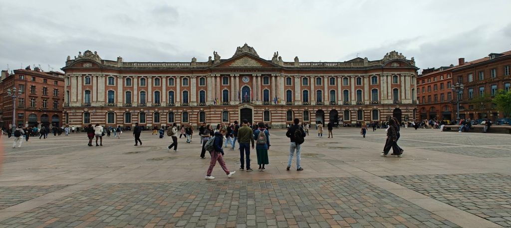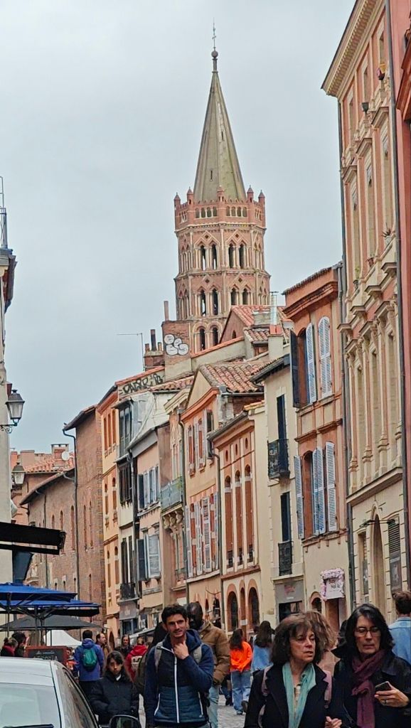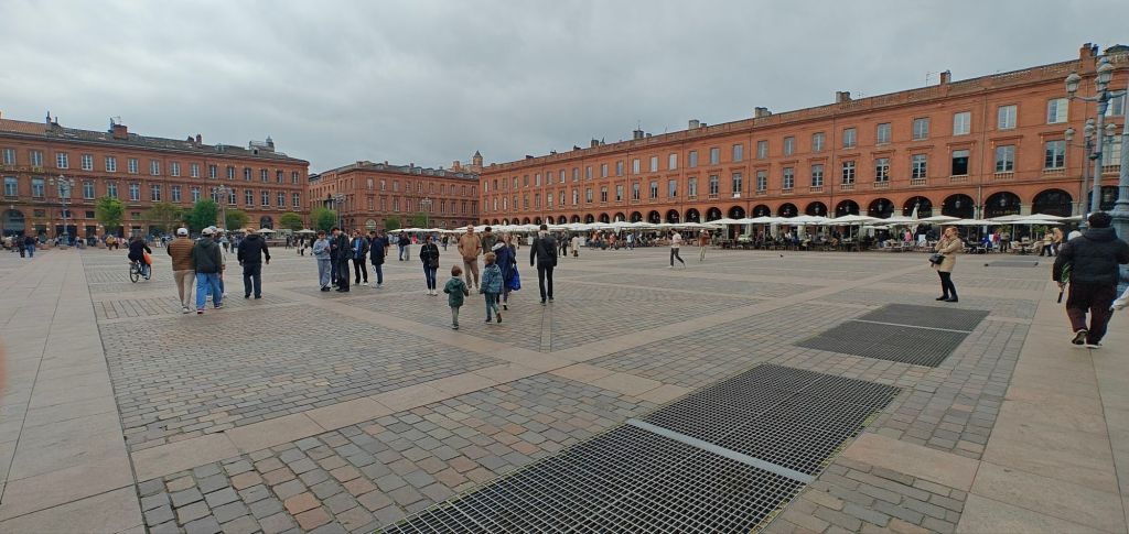 Lots of photos in this post as there’s not much worth describing regarding the trail into the city. It was a numbing journey from dormitory towns to outer suburbs to inner suburbs until finally getting to the actual city. The city is beautiful – known as the Rosé city, not because of wine , but because of the terracotta bricks used in building all its historic buildings. And the city was packed, as if the entire metropolitan population of 1.5 million had descended on downtown for the day. The city is home to the headquarters of Airbus (no factory outlet store that I’m aware of) as well as France’s space and satellite companies. The large university is technology focused and it seemed that every student was sitting at a bar, restaurant or cafe for the day. The city was humming! Here are some pics. You will need to click on them to bring up the complete image.