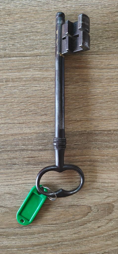 Tonight I’m staying in another little gîte that caters for pilgrims, but this one is private. I’m with 3 other French folks in a small cabin on the hosts property, but dinner was in their house. We were served cassoulet, a traditional dish from this region, made properly in an earthenware casserole. The sort of meal that an army could march on. Delicious! The host works at the local ‘castle’ and a a result has the key to the church. After 39 km, I didn’t feel like hiking up the hill to see it, but the key was impressive!