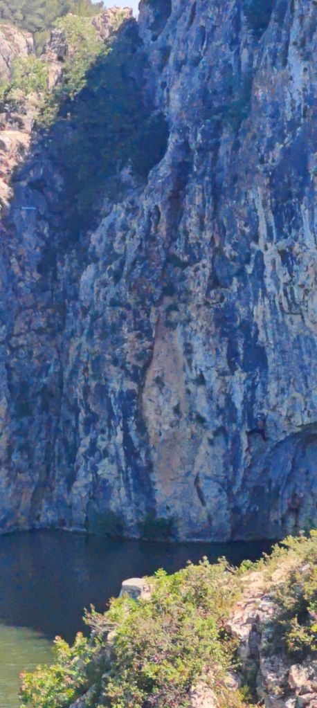 The second exception was after bumbling along some less than inspiring landscape, the trail suddenly encounters a river gorge, with a large rock face popular with the rock climbing set. The only downside was that for a couple of kms the trail was composed of the same gnarly rocks – although that didn’t seem to faze the trail runners who blazed past me!