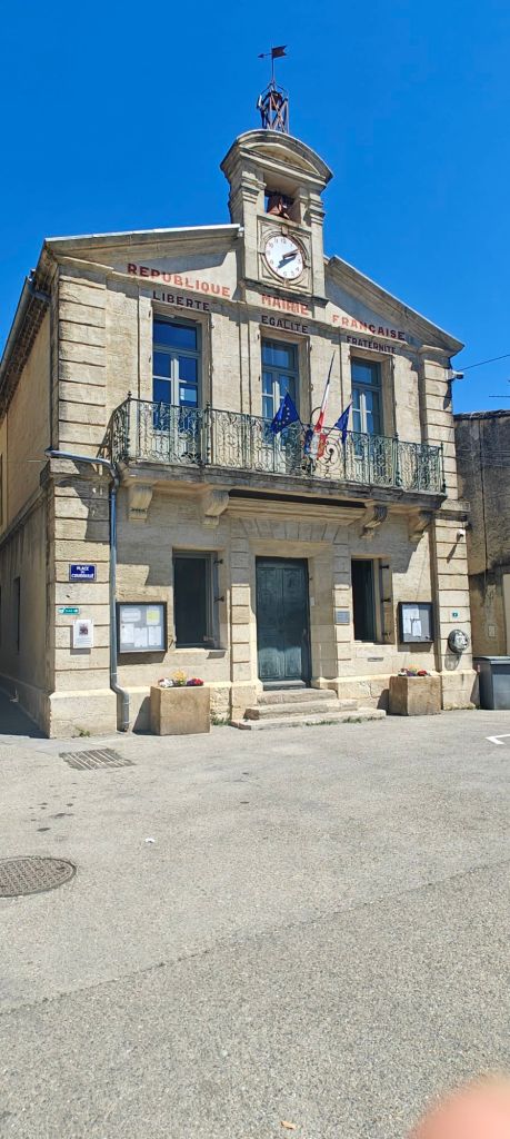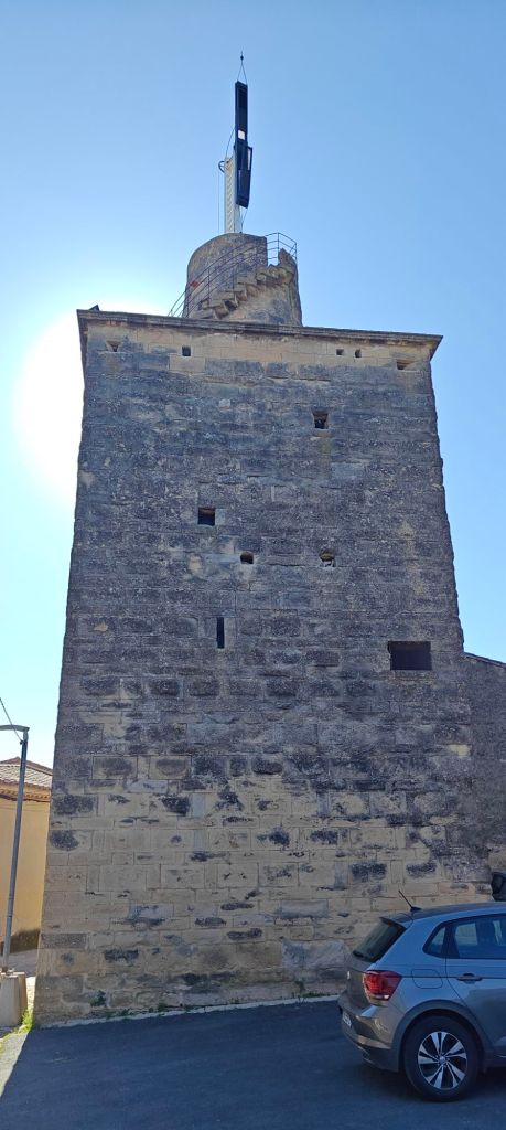 Gallargues is a nice village, with quite a bit of history attached. The original 13th century tower was used from 1832 onwards as an optical messaging station. You can see the black & white panels at the top which were used for messaging.