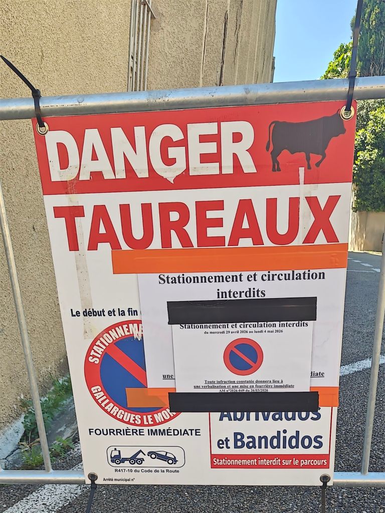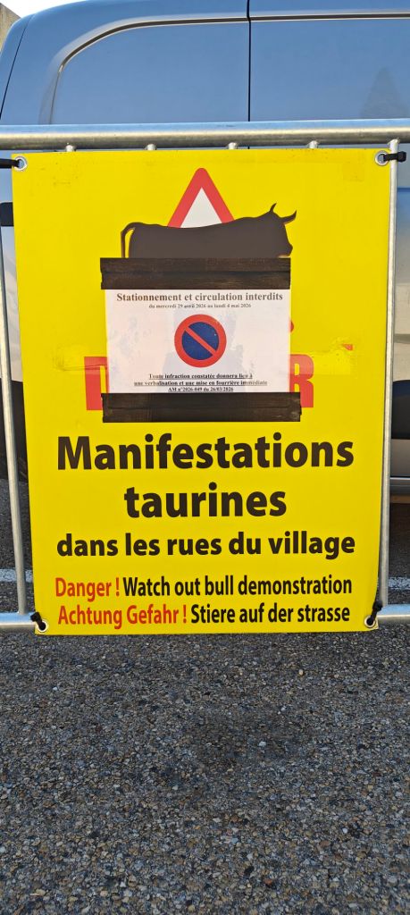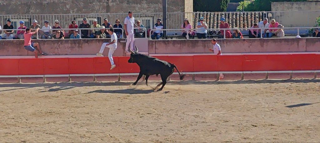 I went for a stroll around town wondering where all the residents were on a Sunday evening, when I came across the event in progress – bull fighting in the manner of the Carmargue region. It was rather exciting to watch, and likely more exciting for the participants – there’s about 8 guys in the arena at a time basically playing tag with the bull. Getting tagged by said bull is to be avoided!. And less bloodthirsty than the Spanish version!